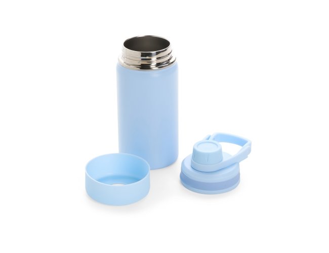 Garrafa térmica em inox, pintura eletrostática e capacidade para até 350ml. Conta com estrutura de parede dupla e vedação a vácuo, permitindo conservar a temperatura de líquidos por mais tempo. Possui tampa rosqueável com protetor para o bocal e alça fixa para facilitar o transporte. Acompanha protetor para a base em silicone.