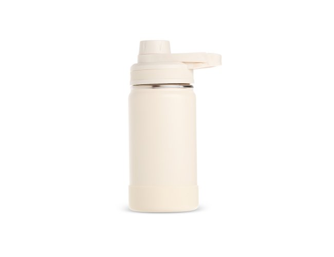 Garrafa térmica em inox, pintura eletrostática e capacidade para até 350ml. Conta com estrutura de parede dupla e vedação a vácuo, permitindo conservar a temperatura de líquidos por mais tempo. Possui tampa rosqueável com protetor para o bocal e alça fixa para facilitar o transporte. Acompanha protetor para a base em silicone.